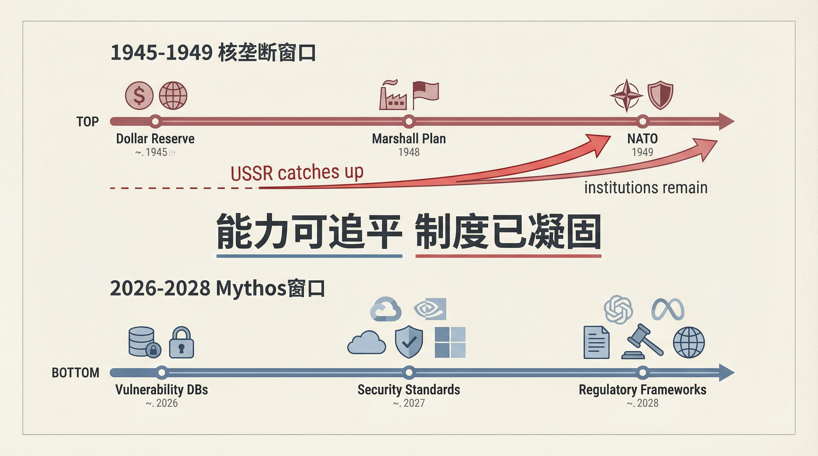 能力窗口期对比:1945-1949核垄断 vs 2026-2028 Mythos窗口