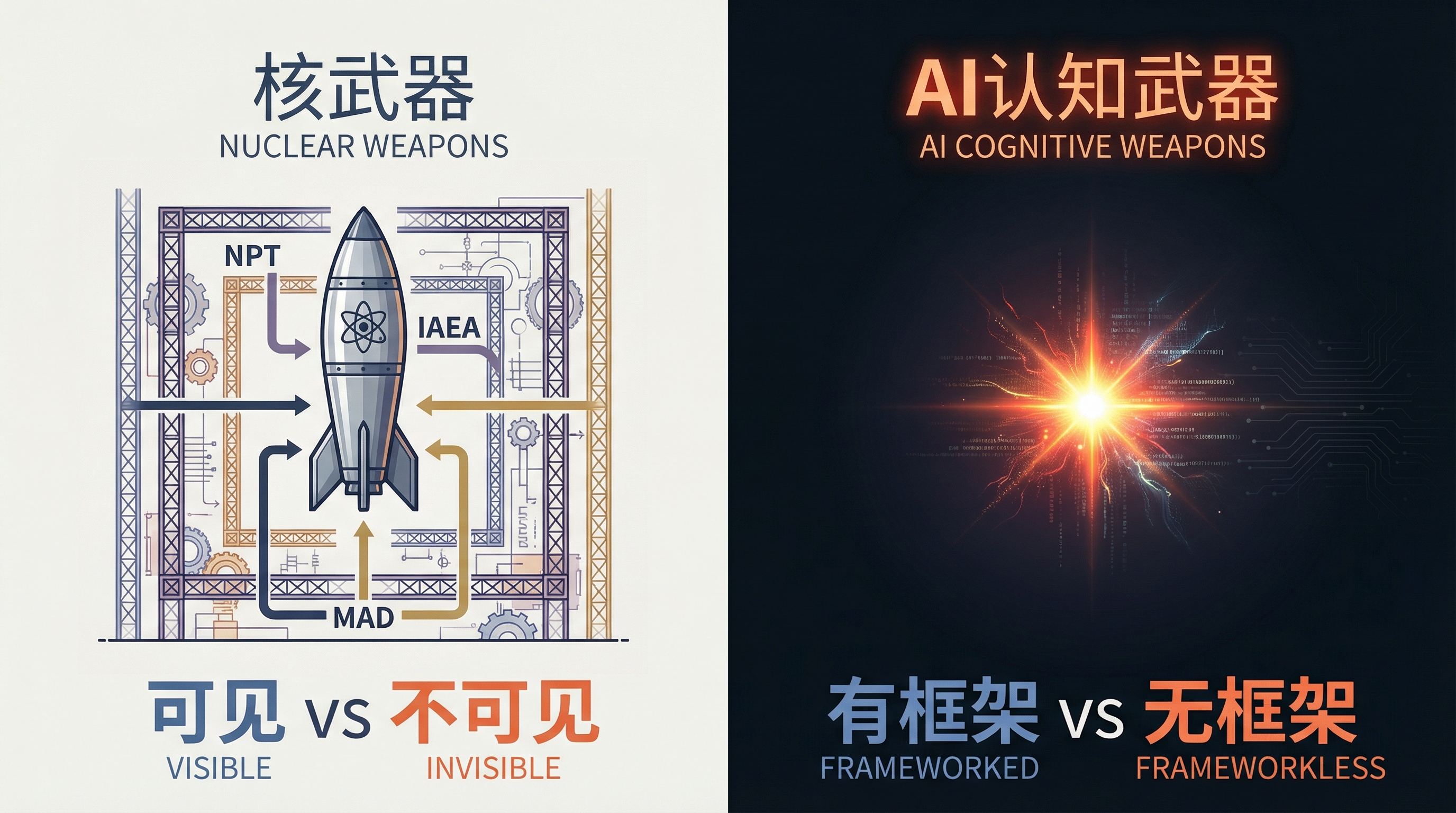 现在全世界为物理层面的核武器谈了几十年,框架虽然漏洞百出但至少存在。认知层面的"核武器"?连讨论该不该有框架的共识都还没形成。