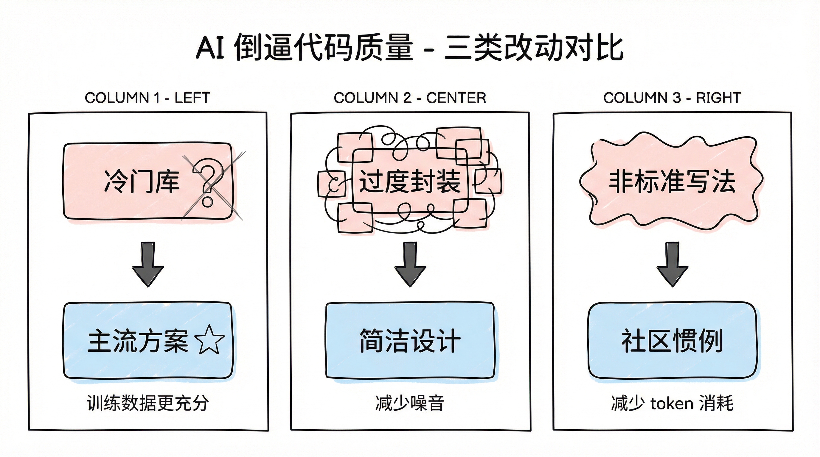 An interesting reverse effect also emerged: to help AI perform better, the codebase itself was proactively improved. Three types of changes were typical. First, replacing niche third-party libraries with mainstream community alternatives — AI performs better with popular libraries due to richer training data, and community conventions tend to be more reasonable anyway. Second, removing over-engineering and unnecessary abstraction layers — patterns that "only the original author could decipher" were pure noise for AI. Third, converting non-standard implementations to community conventions — replacing verbose custom solutions with standard library equivalents, reducing the token overhead from idiosyncratic patterns.