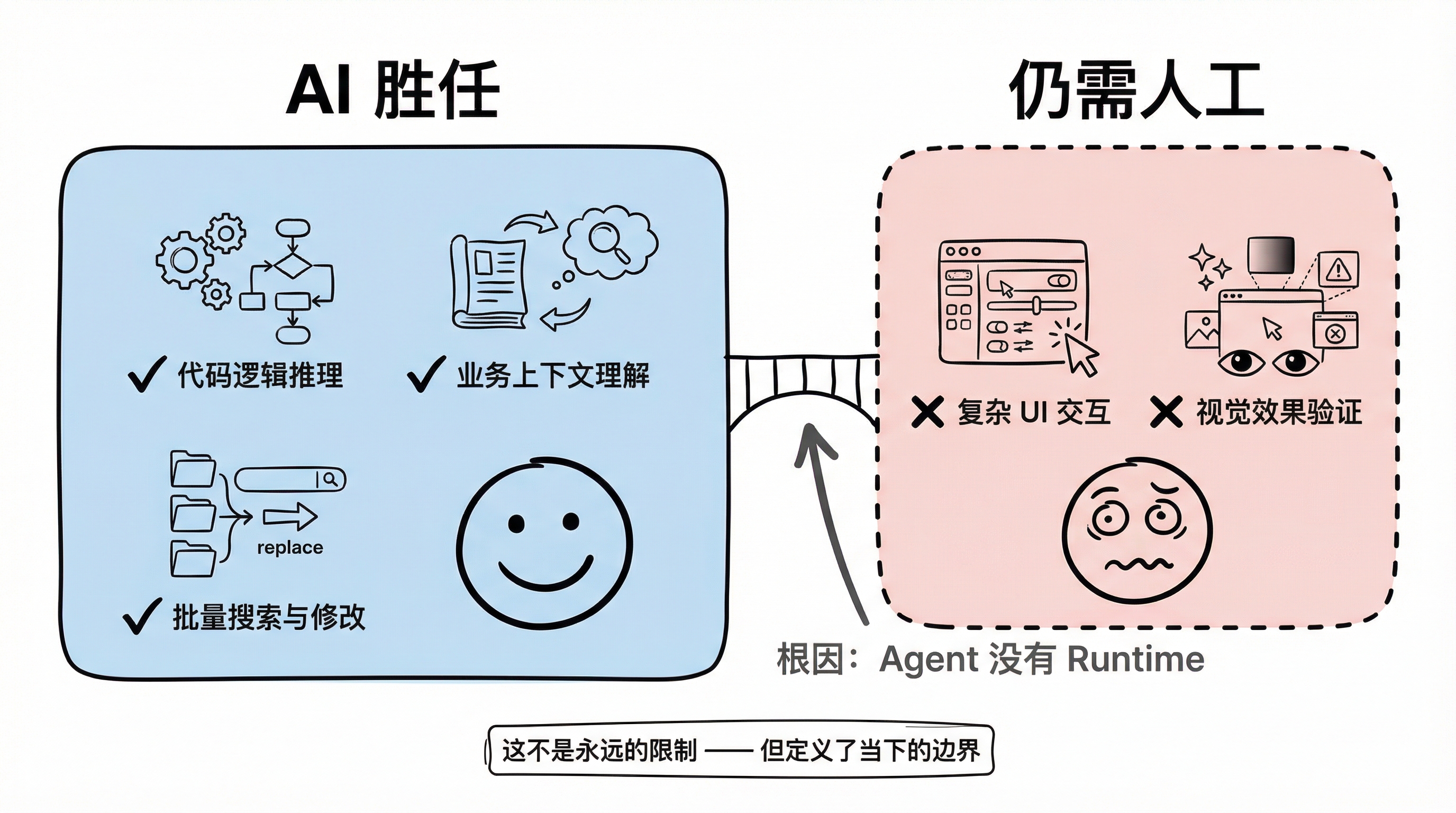 Vibe Coding capability boundary: AI-capable vs still-needs-human zones